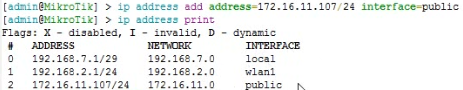 a. type shyntax ip address add address="ip address/subnet" interface="interface"